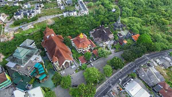 Di sini kami sanggup memandang langsung harmoni kerukunan umat beragama yang ada di Bali, meskipun tempat ibadah ini berasal dari agama-agama yang tidak serupa dan letaknya bersebelahan namun tidak saling mengganggu dan semuanya senantiasa saling menghormati. Lokasinya yang berada di atas bukit juga memicu kalian jadi nyaman untuk beribadah lebih-lebih di dalam gedung gereja.
